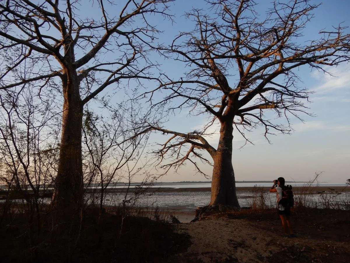 Overlooking the mudflats in the northwest of Bubaque island, Bijagós, with some large baoban trees marking the shoreline.